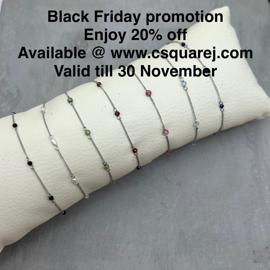 Stainless steel Dainty Bracelet starburst - spinel, lapis lazuli, Freshwater Pearl, Tourmaline, Garnet