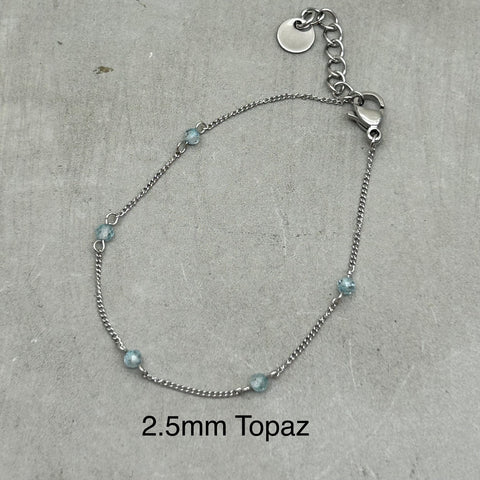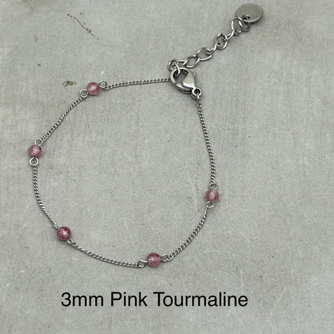 Stainless steel Dainty Bracelet starburst - spinel, lapis lazuli, Freshwater Pearl, Tourmaline, Garnet